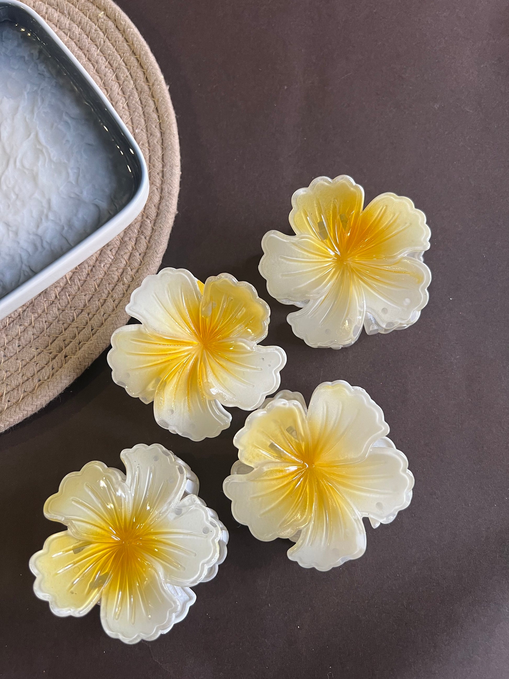 Graceful yellow-white flower clips made from durable plastic with a strong grip. Perfect for vacations, festive occasions, parties, or bringing a touch of sunshine to everyday styling.
